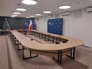 • rekonfigurowany w zależności od charakteru spotkania – stół może być podłużnym jednostronnym modelem, może tworzyć podkowę lub literę L w zależności od wymagań i potrzeb konkretnych meetingów