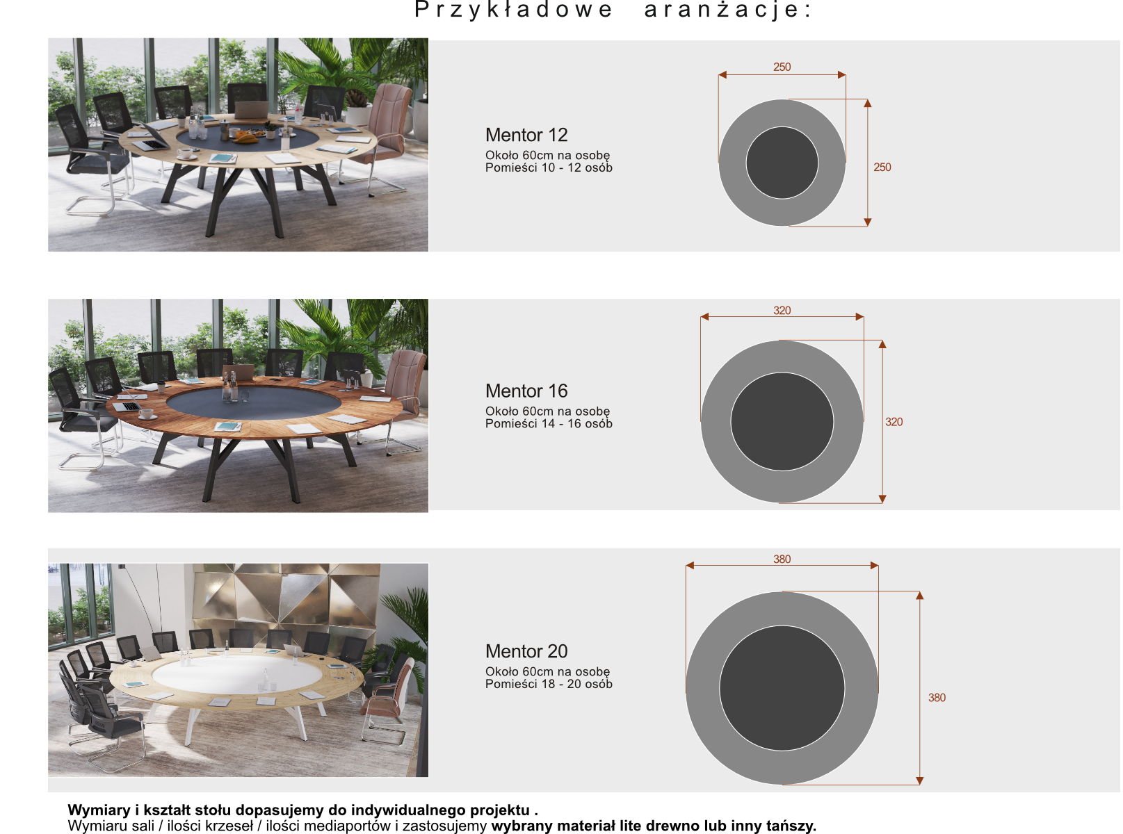 • Wielkość stołów konfigurowana indywidualnie i bez ograniczeń